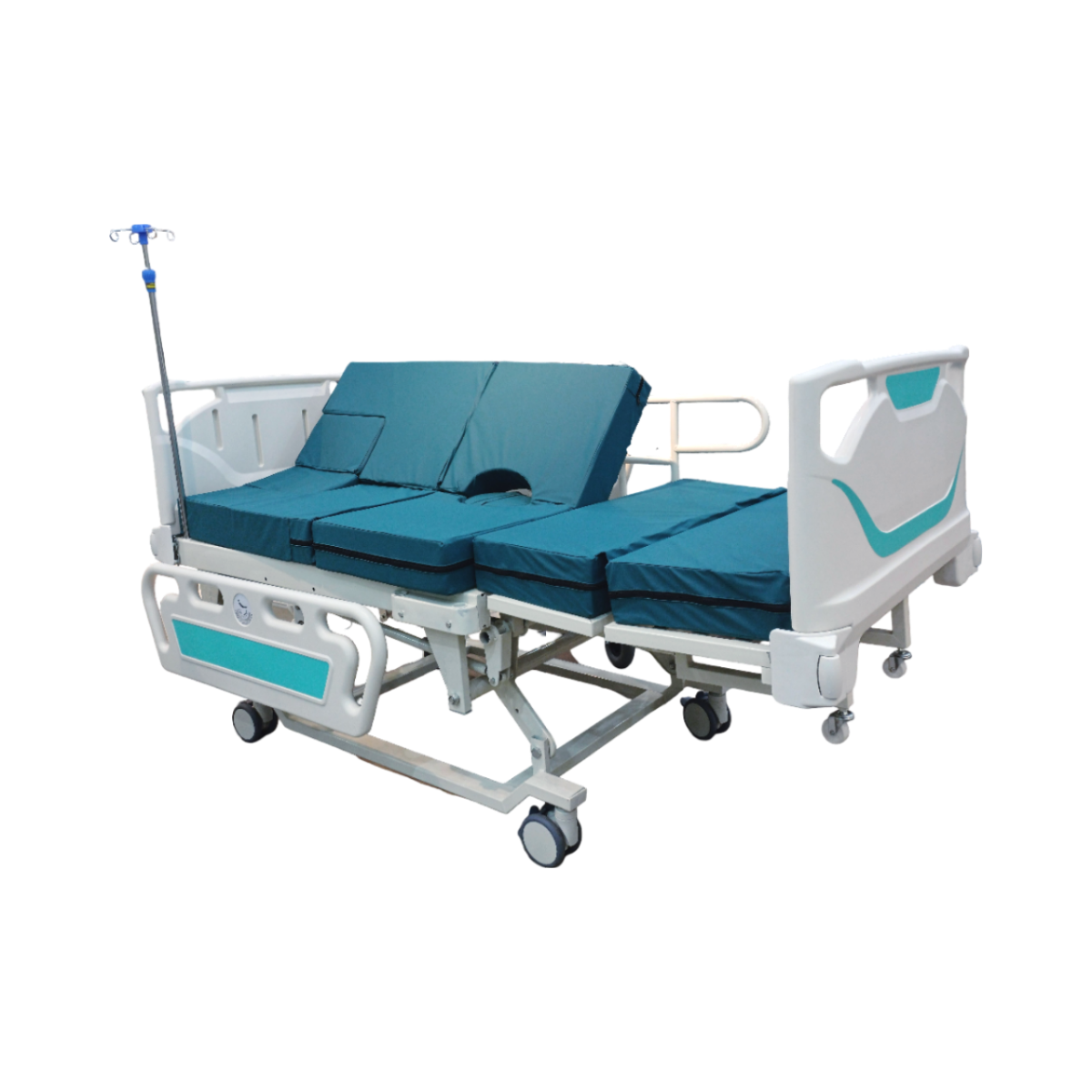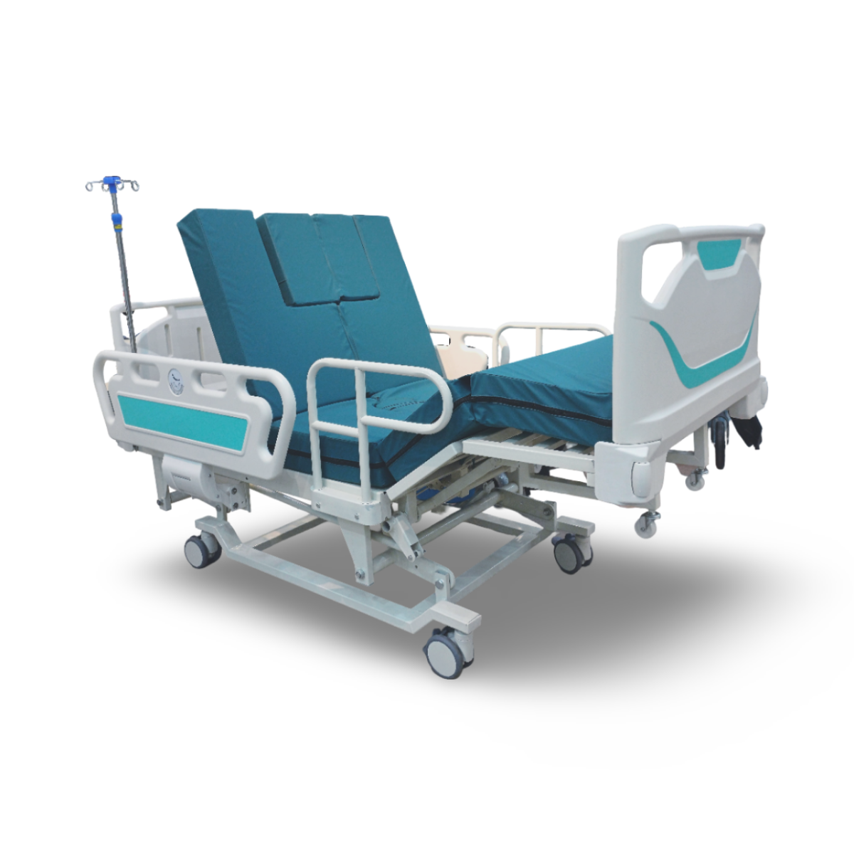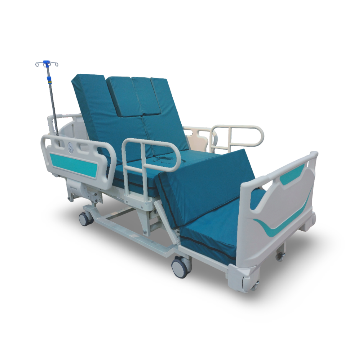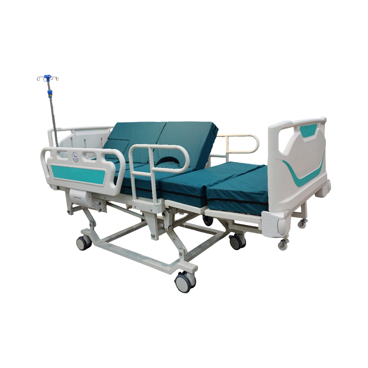 يوفر هذا السرير وظائف متعددة مثل رفع الظهر والساقين، تعديل ارتفاع السرير، تقليب المريض على كلا الجانبين، ووضعية الحمام المدمجة لتسهيل النظافة الشخصية دون الحاجة إلى نقل المريض.