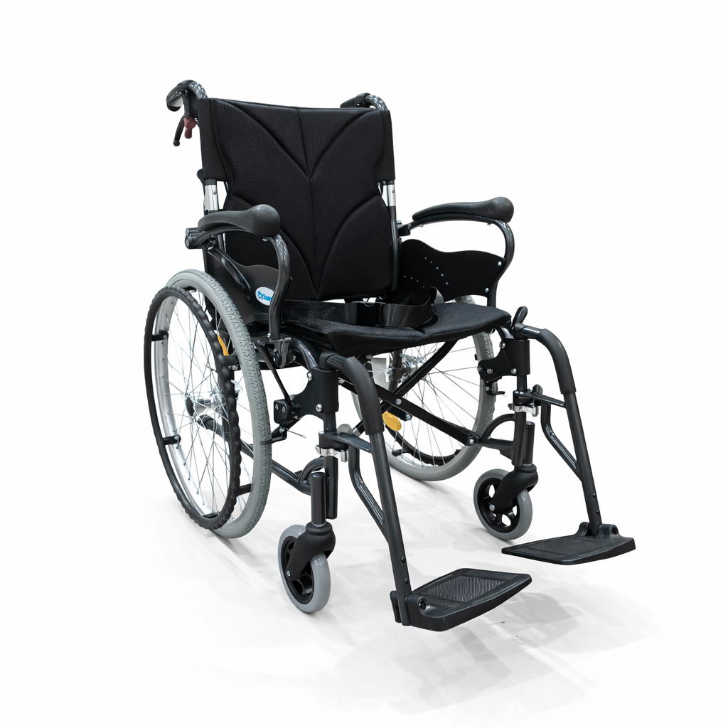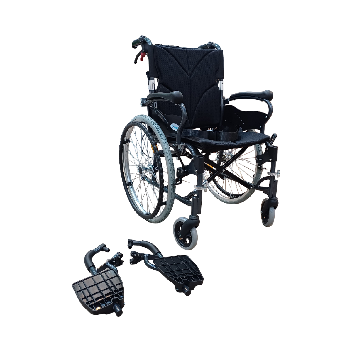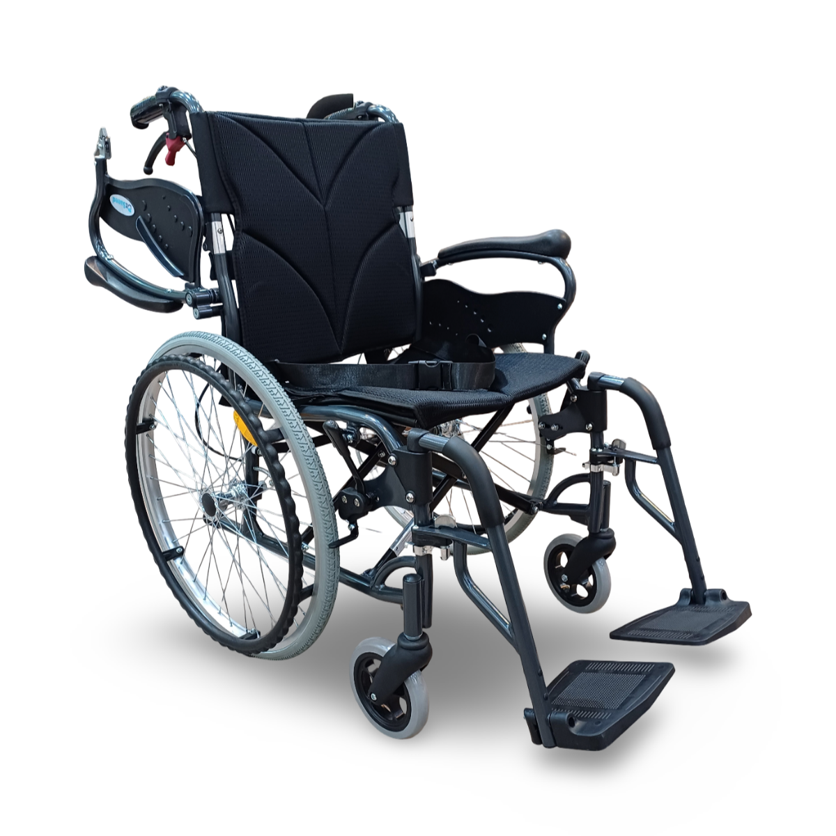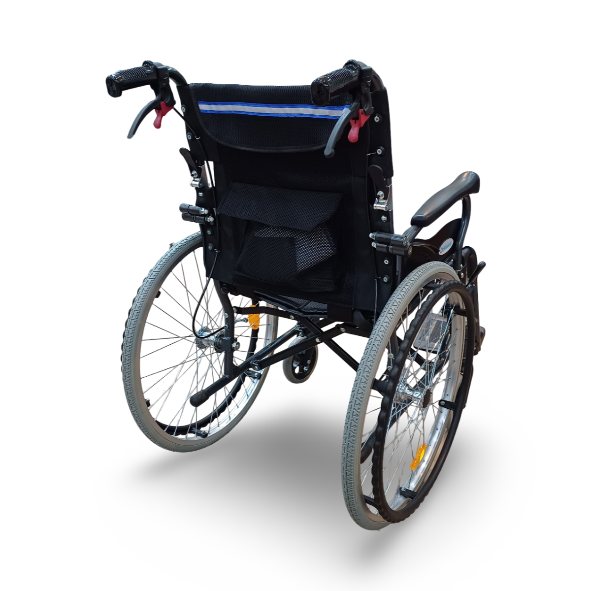 - مكابح يدوية متطورة: تمنحك تحكماً دقيقاً في حركة الكرسي، سواء عند التوقف أو أثناء التنقل على المنحدرات.